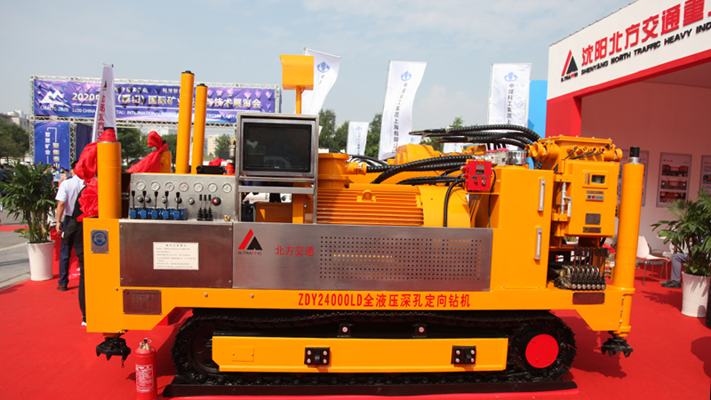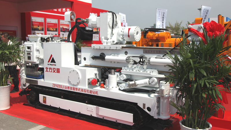 ZDY24000LD煤礦用履帶式液壓坑道定向鉆機是北方交通展出的又一明星產品,該機型動力頭采用雙馬達,額定輸出扭矩24000Nm,擴孔直徑可達到270mm;具備良好的地質適應性和超強的孔內事故處理能力;進給機構采用側向V形導軌,運行平穩;高精度隨鉆測量系統,采用高端元件,確保軌跡測量精確,可按設計軌跡進行多方位分支鉆孔,實現大面積抽采。